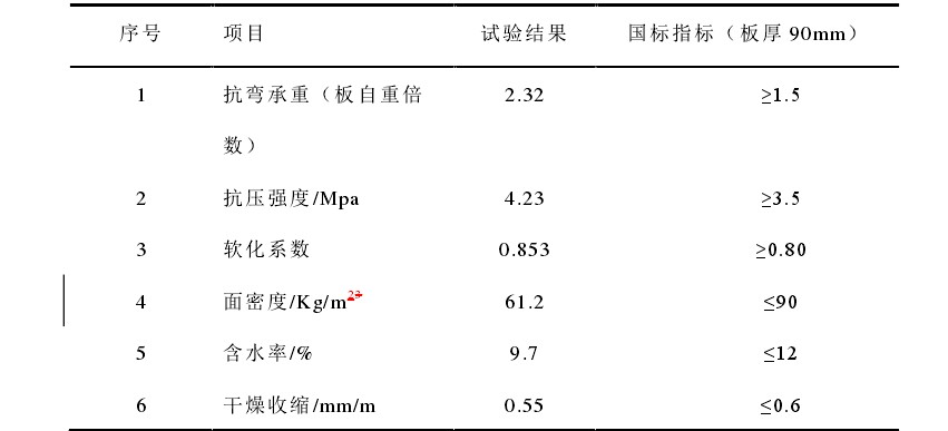 制的輕質隔墻板,測試的結果從表中我們可以了解到生產的輕質隔
