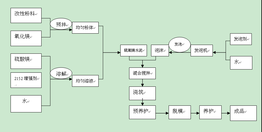備注、硫氧鎂發泡輕質隔墻板制備工藝關鍵點提煉如下: